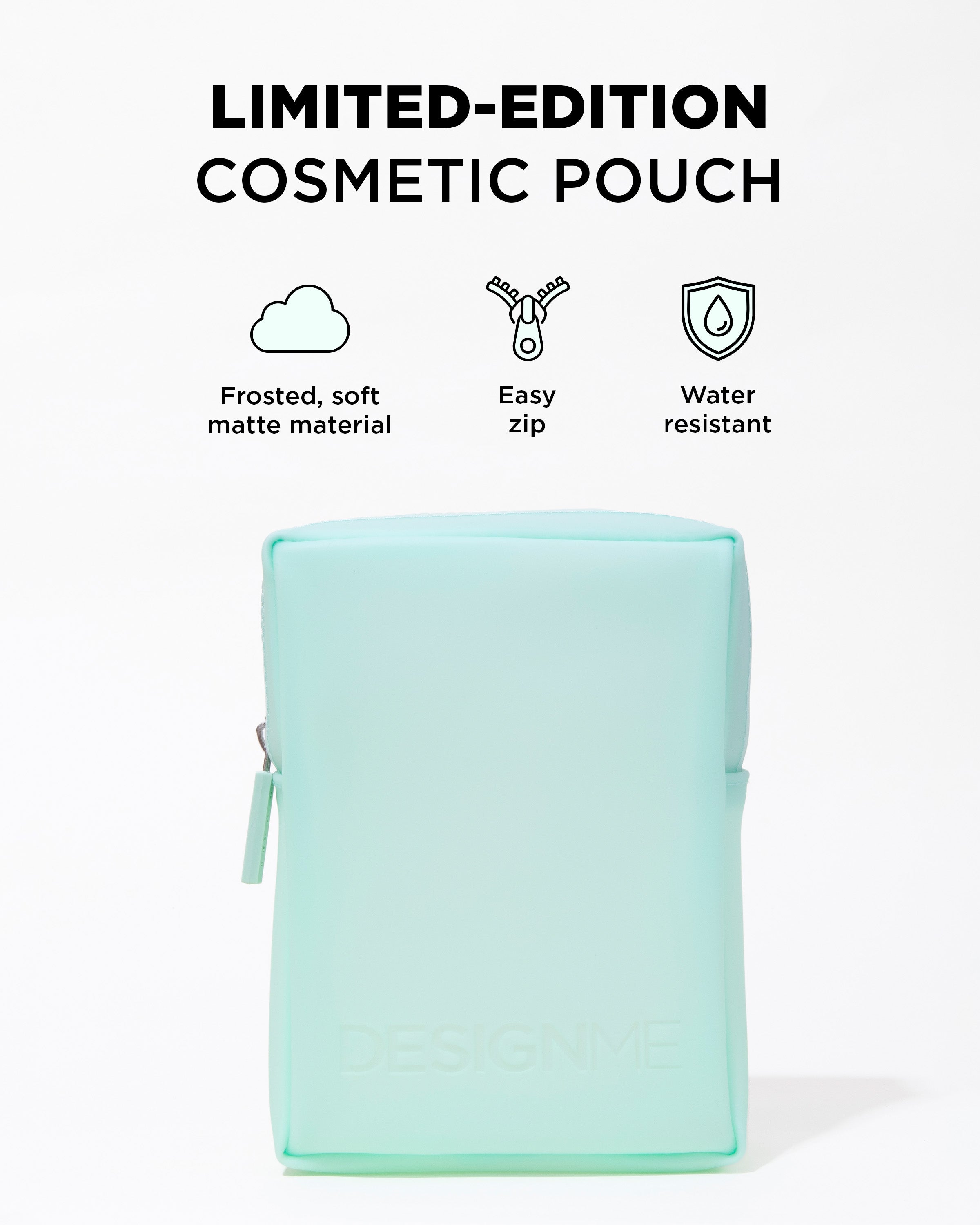• A reusable water-resistant cosmetic pouch